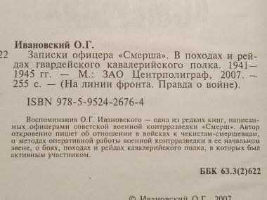 Ивановский. . Записки офицера Смерша. В походах и рейдах гвардейского кавалерийского полка 1941-1945. . Центрполиграф. 2007
