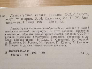 Литературные сказки народов СССР. Москва: Правда. 1989