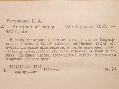 Евтушенко. Завтрашний ветер. Публицистика. Поэзия. Москва: Правда. 1987