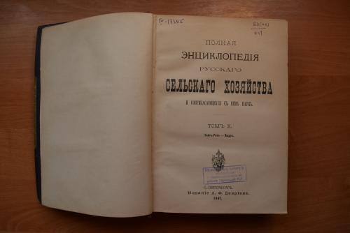 Уайтъ-Ротъ Ящуръ, Полная Энциклопедия Русскаго Сельськаго Хозяйства и соприкасающихся съ нимъ наукъ. Томъ Х, 1907 г. Издание А.Ф. Девріенна С.-ПЕТЕРБУРГЪ. Загальний стан хороший, дуже багато чорнобілих ілюстрацій, всі сторінки на місці, є значне пошкодження переплету, книжка родерта по середині і тримається тільки на обкладинці, але це не проблема для реставратора. Присутні бібліотечні штампи. добавлено 2016-03-05 22:34:фото |